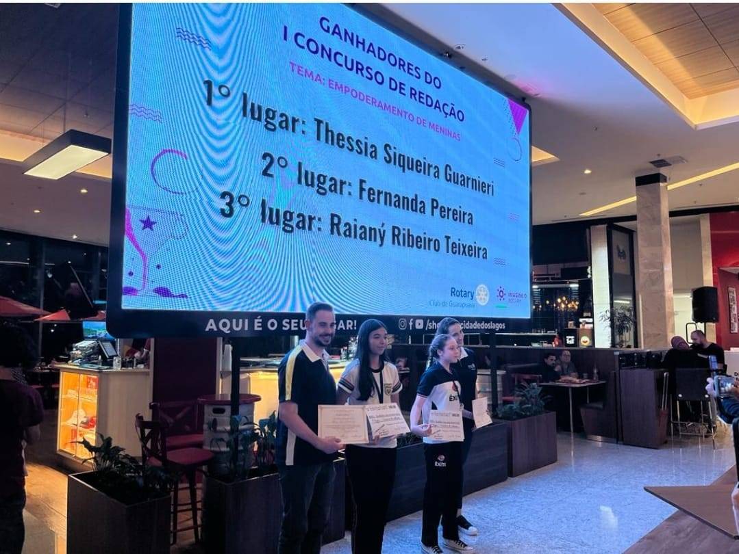 No dia 12 de abril de 2023 às 19hs, na Praça de Alimentação do Shopping Cidade dos Lagos, em Guarapuava. A comissão organizadora formada pelas companheiras Taila e Francieli, juntamente com o Presidente Luiz Felipe Baldissera e demais companheiros, fizeram a entrega da Premiação aos ganhadores do Concurso de Redação, cujo tema foi Empoderamento das Meninas. Onde foram concedidas medalhas e certificados aos primeiros colocados dos alunos do Ensino Fundamental, Médio e Superior. Bem como a premiação maior para os 3 primeiros colocados gerais.