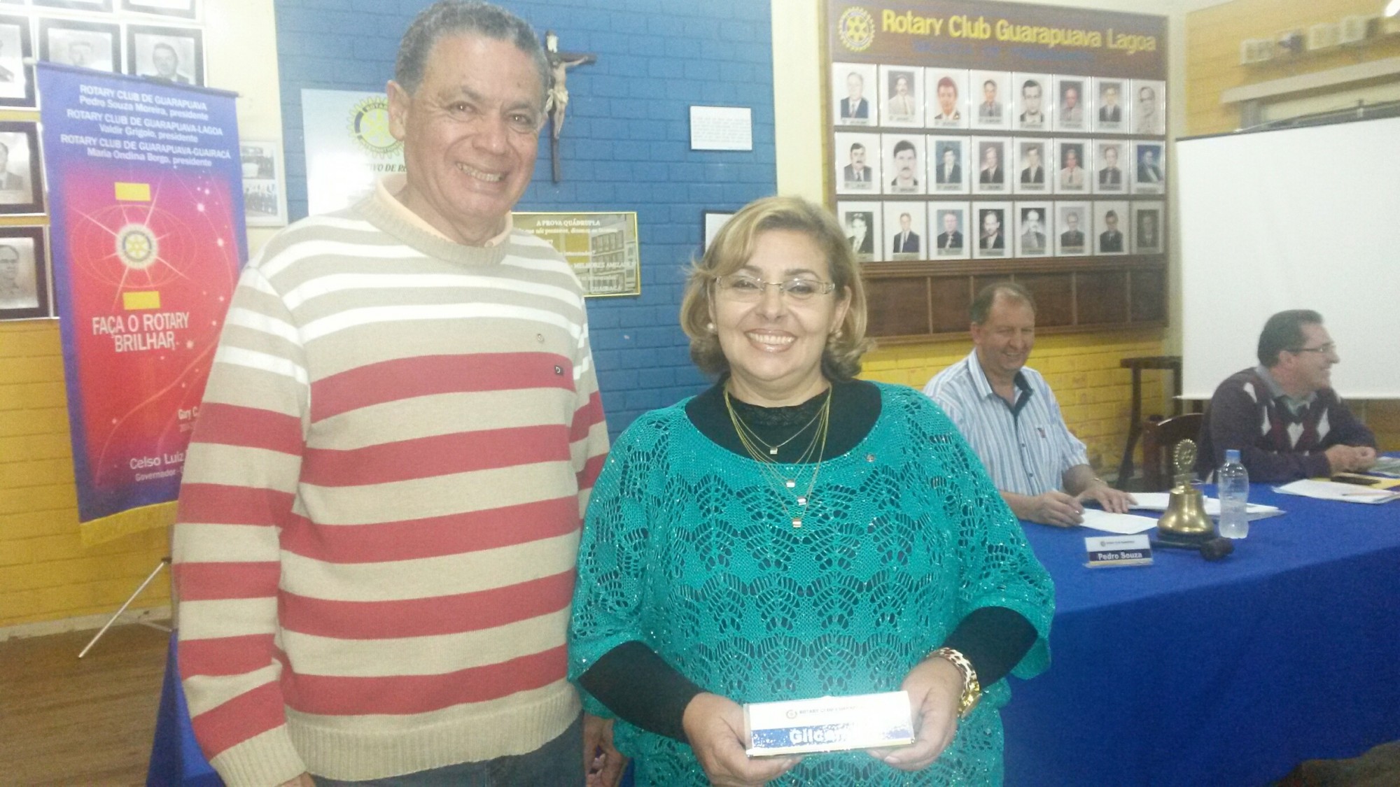 A companheira Gilcemar recebeu a placa de identificação das mãos do Rotariano e seu padrinho Hirand.