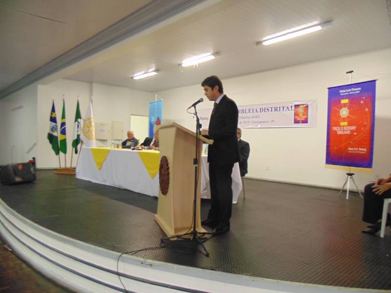 Durante a Assembléia Distrital realizada em Guarapuava, o Prefeito Cesar Filho, enalteceu o Trabalho do Rotary e disse que a Prefeitura já é parceira no projeto Pelotão Esperança desenvolvido pelo Rotary Club Guarapuava Lagoa.