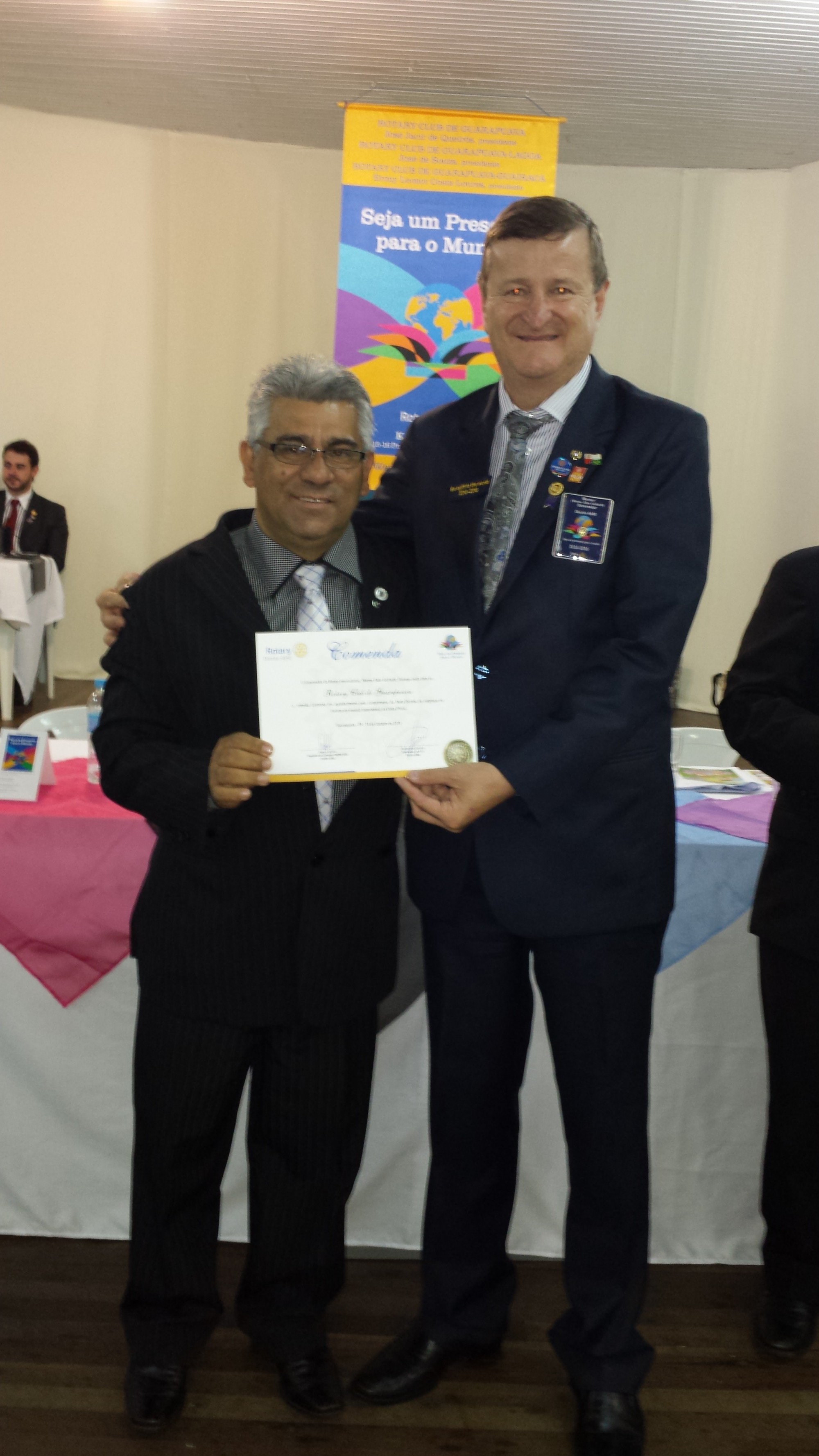 Durante a festiva dia 14.10.2015 às 20 hs na Casa da Amizade, o Rotary Club de Guarapuava, recebeu a Comenda do Governardor Werner Ildon Gerhardt, em agradecimento pelo cumprimento da Meta Distrital, de empossar no mínimo um associado(a) na Visita Oficial. Pois, neste dia empossamos a nova companheira Paola.