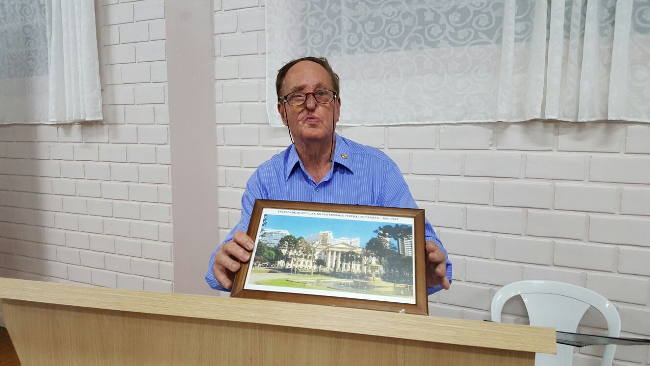 Mostrou o Certificado e fotos da homenagem feita em 12/2015 pela UFPR, pelo Jubileu de Diamante pela formatura em medicina.
