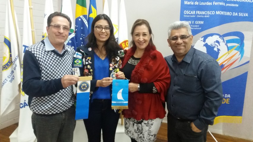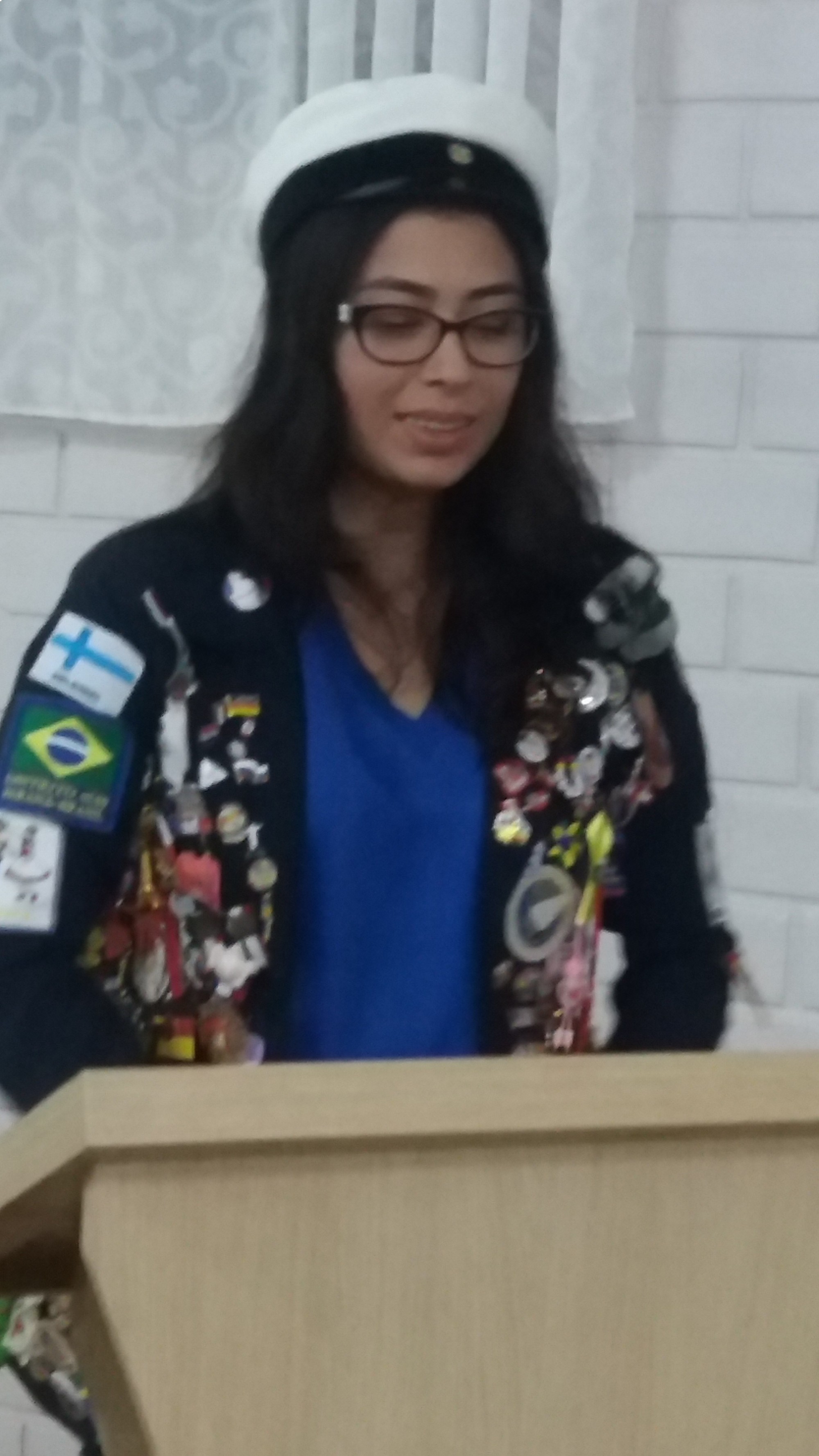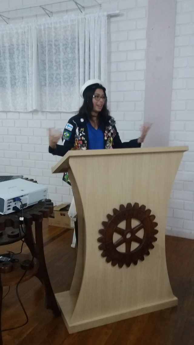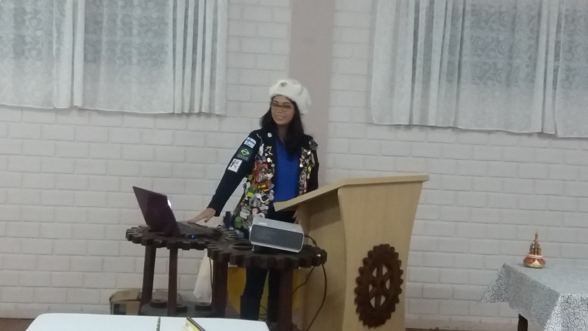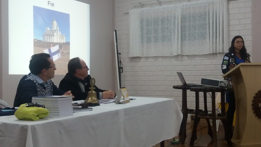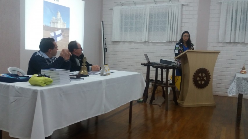 Na última quarta-feira(21), na casa da amizade, durante a reunião do Rotary Club de Guarapuava, tivemos a apresentação da nossa Intercambista Jade Santini, que voltou da Finlândia. Uma apresesentação impecável, pois, relatou todo o seu intercâmbio, além de dar detalhes do sistema de governo e condiçôes de vida daquele País. Respondeu todas as perguntas dos rotarianos. Ao final o Presidente Marcos Aurélio Mattos e a Oficial de Intercâmbio Rosilda Camargo Buzzi, parabenizou a intercambista e seus pais Leonardo e Quilair Santini.