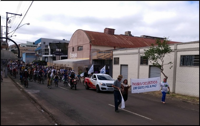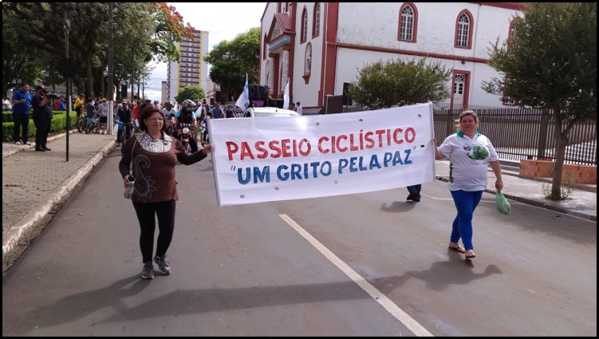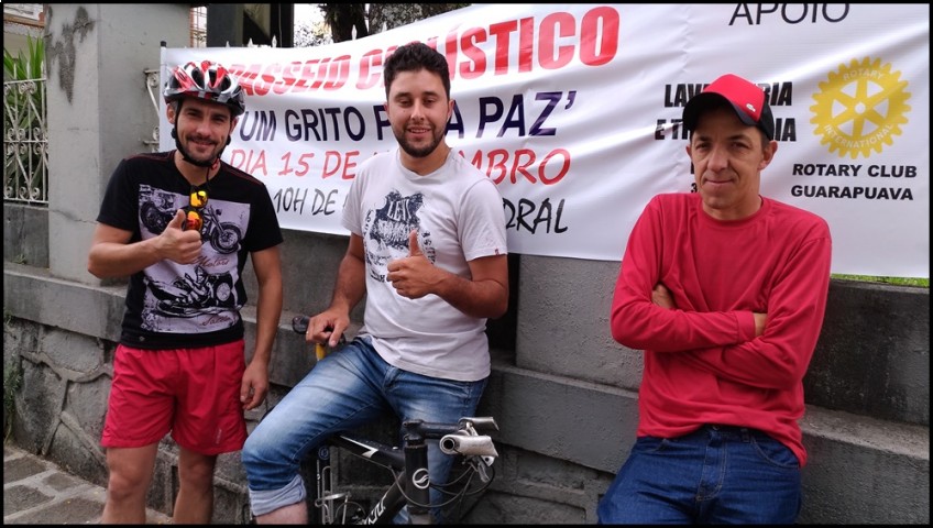 O Rotary Club de Guarapuava e Catedral Nossa Senhora de Belém, realizaram nesta terça-feira(15) o 14º Passeio Ciclístico Um Grito Pela Paz, onde participaram centenas de ciclistas de nossa cidade. Tivemos também a presença de padres do Verbo Divino, Rotarianos, Intercambistas. A cobertura da imprensa falada e escrita foi fundamental para o sucesso do passeio, conforme agradecimento do Jair Golinhak, organizador do evento. A saída foi às 10hs em frente a Catedral Nossa Senhora de Belém e a chegada foi no Bosque Arnaldo Jansen no Bairro Cascavel. Onde foi realizado o sorteio de bicicletas e brindes aos participantes. Esse bosque foi idealizado pelo Rotary Club de Guarapuava, através do companheiro Rotariano Jair Golinhak(Betinho) onde foram plantadas mais de 5 mil árvores e hoje é preservado pela comunidade.