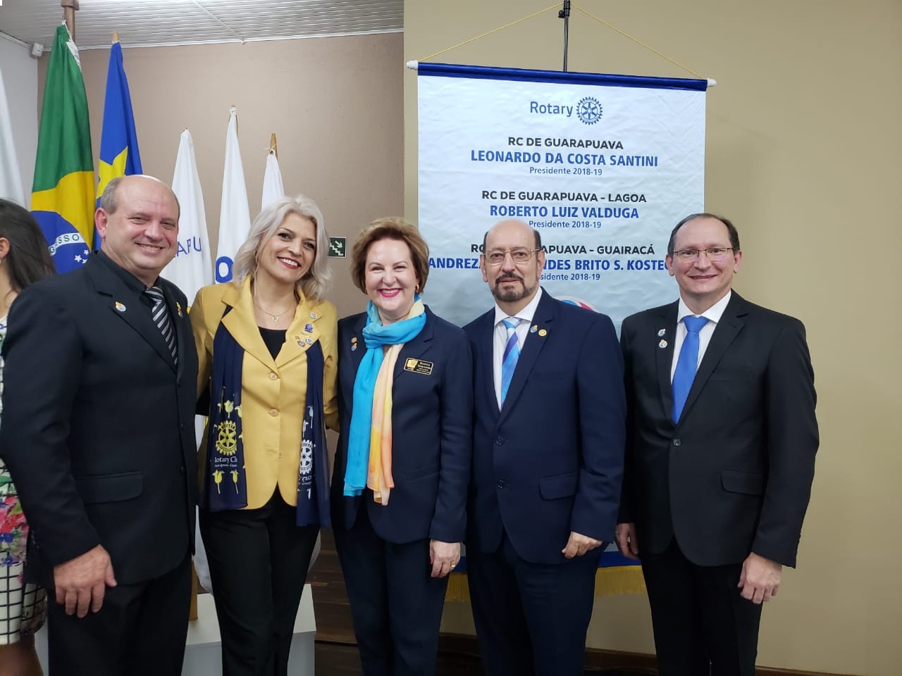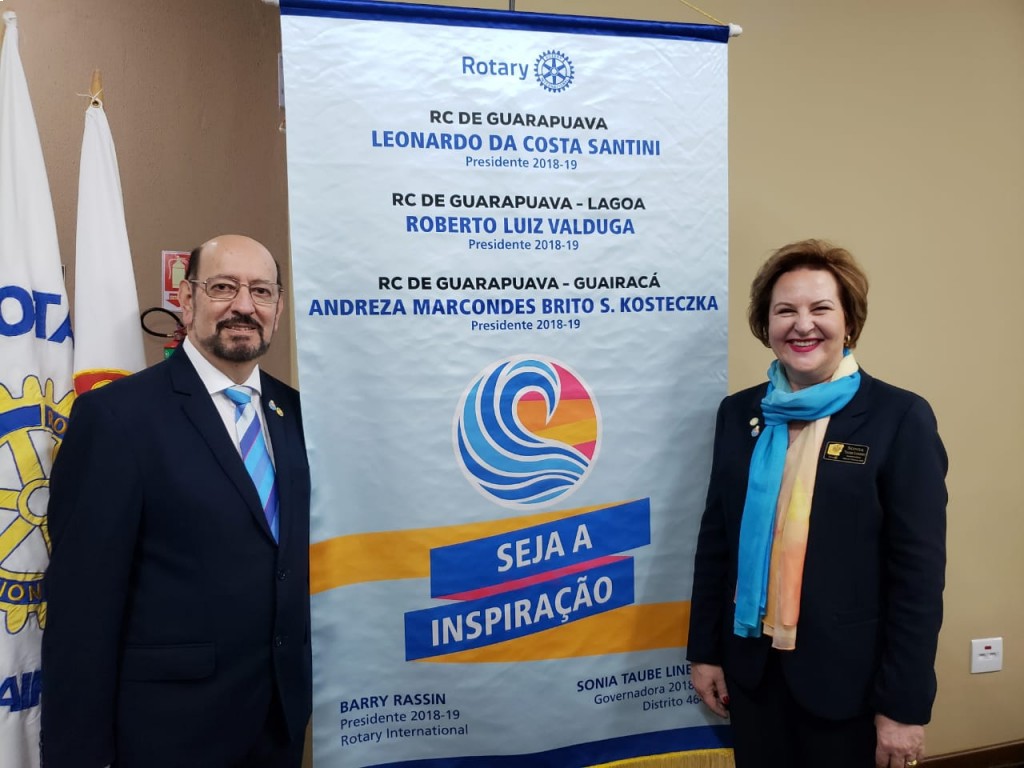 Na noite da última terça-feira, dia 03, ocorreu a posse conjunta dos Rotary Clubs de Guarapuava, Rotaract, Interact e ASR. O evento contou com a presença da Governadora do Distrito 4640 Sonia Taube Lineiro e seu esposo Luiz Fernando Lineiro. Tomaram posse os seguintes companheiros que assumiram a presidência de seus clubes para a gestão 2018/19: