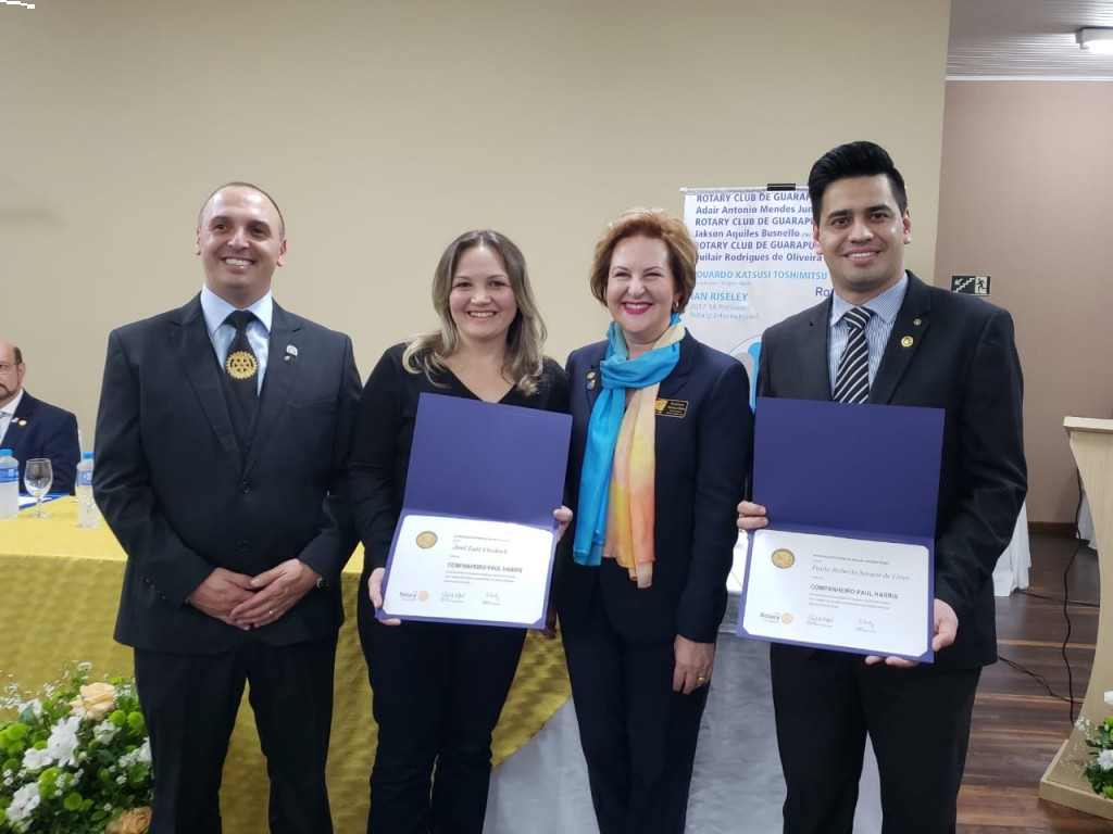 Rotary Club de Guarapuava-Leonardo da Costa Santini; Rotary Club de Guarapuava Lagoa-Roberto Luiz Valduga; Rotary Club de Guarapuava Guairacá-Andreza Marcondes Brito; Rotaract Club de Guarapuava-Bruna Milla Kaminki; Rotaract Club de Guarapuava Campo Real-Leonardo Chandoha Gomes Ferraz e Interact Club de Guarapuava-Beatriz Fonseca Lemos. Foram empossados novos associados dos clubes: Douglas Vieira e Luiz Fernando Brustolin no Rotary Club de Guarapuava; Luciana de Queiroga Bren no Rotary Club de Guarapuava Lagoa; Hugo Vinicius Braz e Daniela da Cruz Lima no Rotaract Club de Guarapuava Campo Real. Tivemos homenagem aos companheiros José Luiz Cieslack, Paulo Roberto Santos Lima e Reinaldo Juliani com o título de companheiro Paul Harris, entregues pela Governadora Sonia.