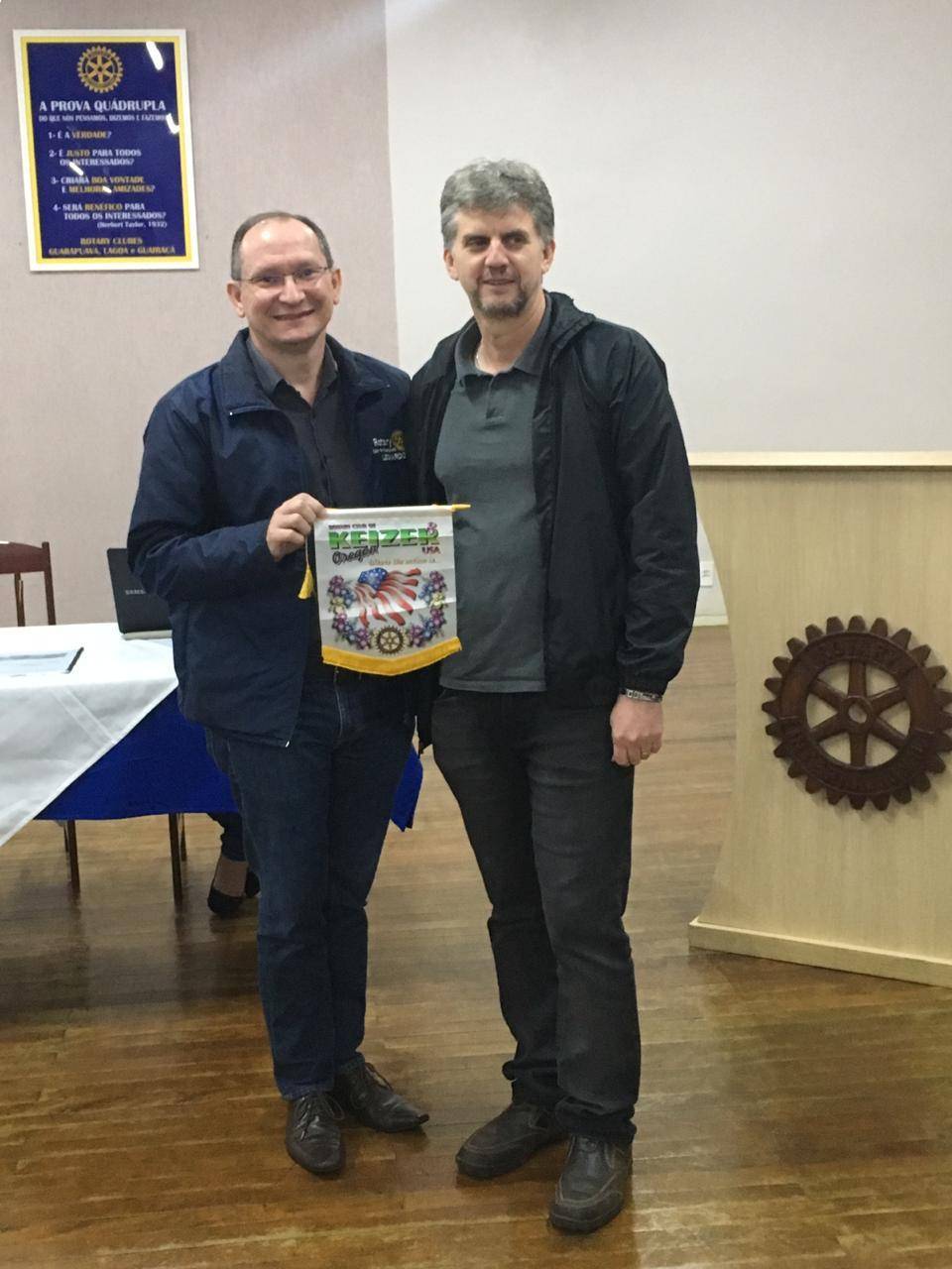 O Rotary Club de Guarapuava na pessoa do seu presidente 2018-2019 o sr. Leonardo Santini recebeu a flâmula do Rotary Club de Keizer no Oregon - USA.