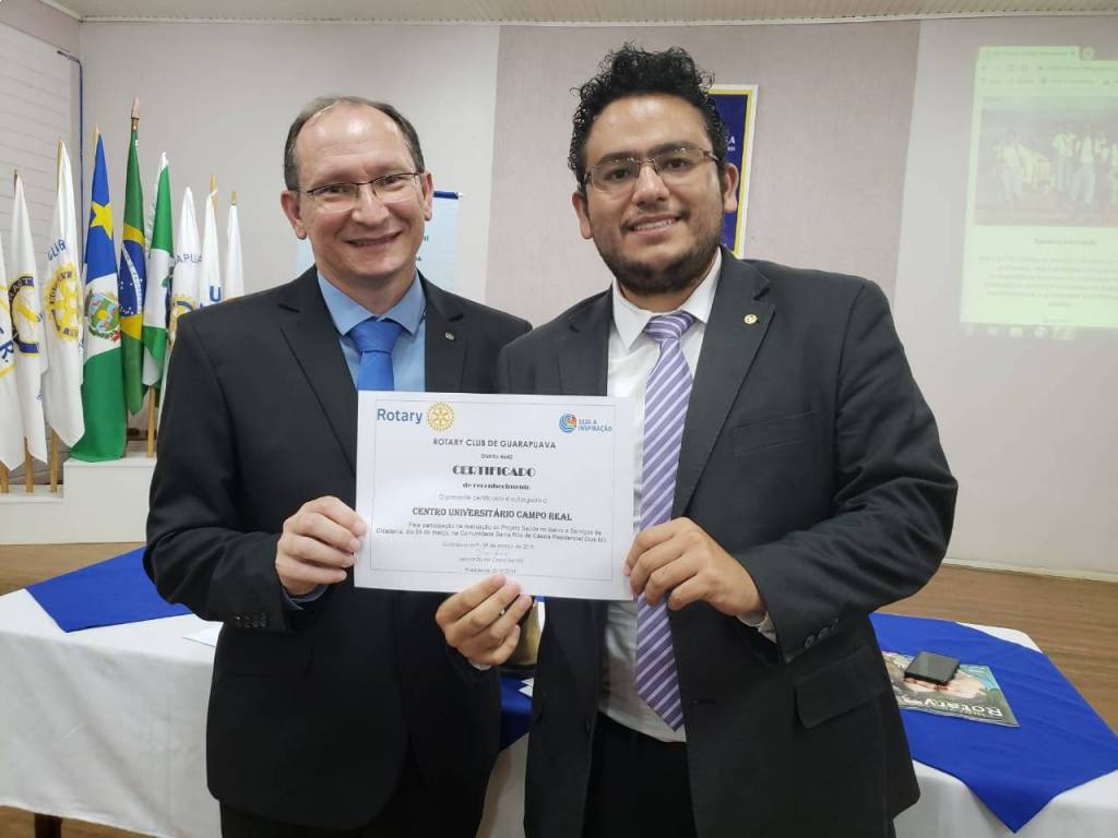 O Rotary Club de Guarapuava fez a entrega dos Certificados de Reconhecimento aos apoiadores do Projeto Saúde no Bairro e Serviços de Cidadania (Rotary Day) realizado no dia 09/03/2019 no Residencial 2000 em Guarapuava.
