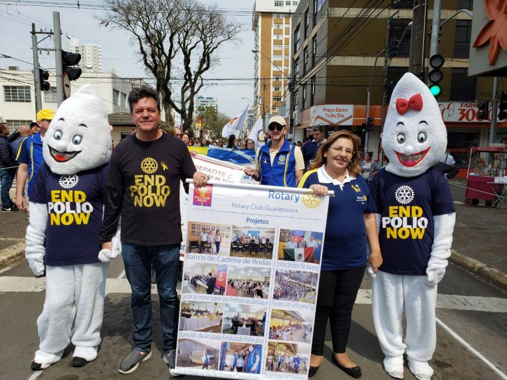 No último dia 07 de setembro em Guarapuava, mais uma vez os Rotarianos do Rotary Club de Guarapuava e demais membros da família rotária, fizeram um excelente desfile mostrando os projetos e realçando a campanha da Poliomielite com a presença do Zé e da Maria Gotinha.