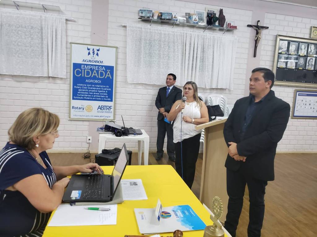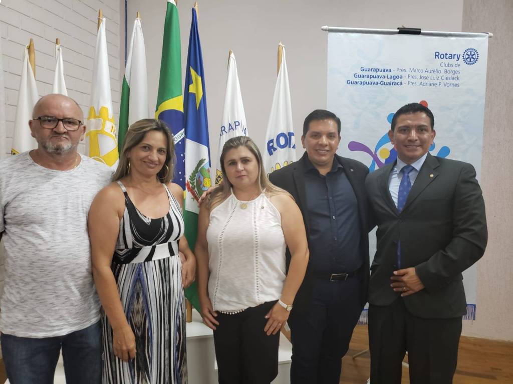 Na reunião realizada na última quarta-feira, 19, o Rotary Club de Guarapuava, o Presidente Marco Aurélio Borges, empossou os novos associados Ronie Von Batista e Sua Esposa Patricia Solochinski. A festiva de posse contou com a presença dos rotarianos e familiares do casal empossado. Os padrinhos dos novos associados são o companheiros Leonardo e Quilair Santini.