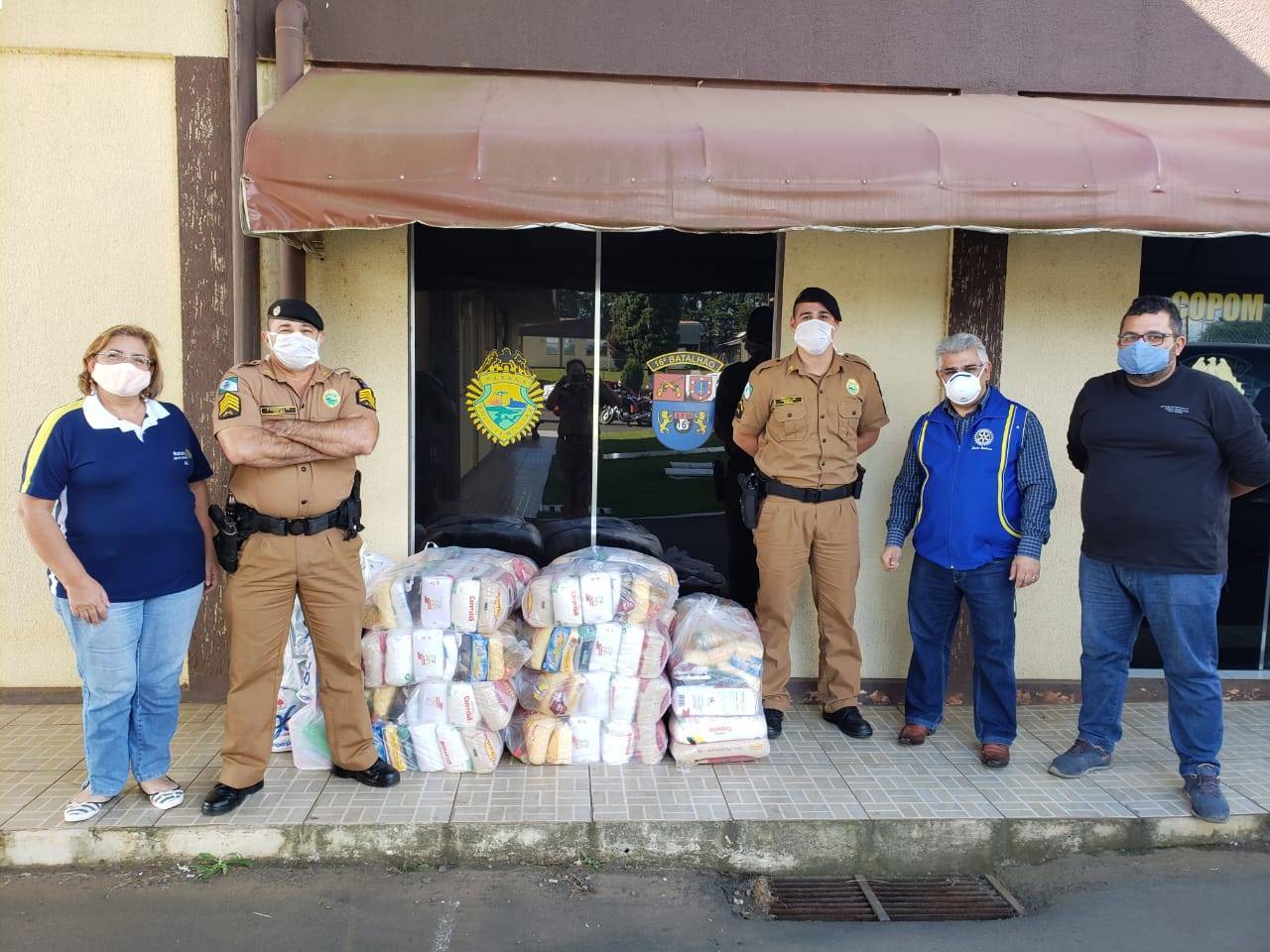 O Rotary Club de Guarapuava, representado pelo Rotarianos Jacir e Gilcemar, juntamente com o voluntário Rodrigo, fizeram na tarde deste sábado,11, a entrega de 19 cestas básicas e 18 Kits Higiene, para a campanha de arrecadação de alimentos e produtos de higiene promovido pelo 16º Batalhão da Polícia Militar. Cujo objetivo é amenizar a necessidade dos idosos acima de 60 anos, além das famílias em vulnerabilidade social e unidades hospitalares, no enfretamento do Coronavírus(Covid-19).